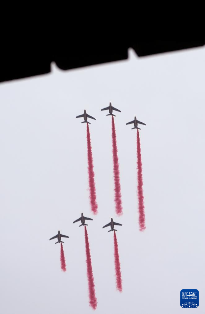 7月26日,飛機(jī)在開幕式上表演。新華社發(fā)(POOL照片/克洛達(dá)赫·基爾科因)pagebreak