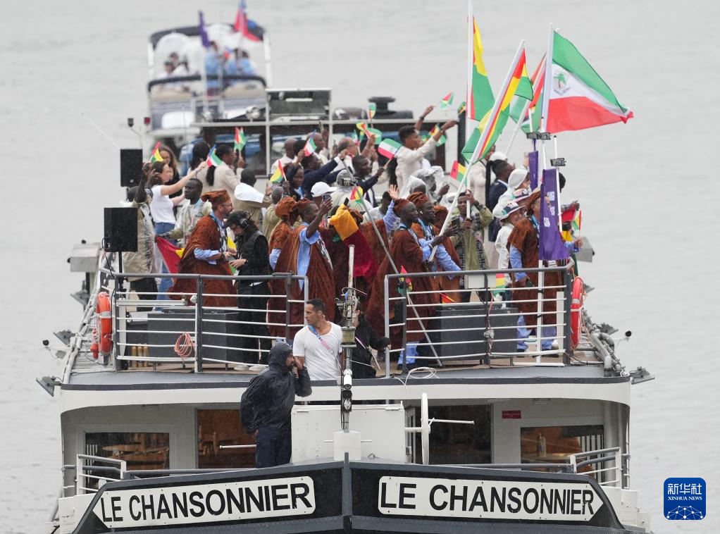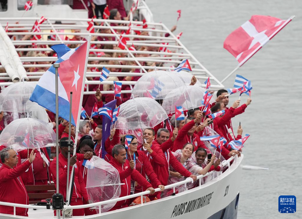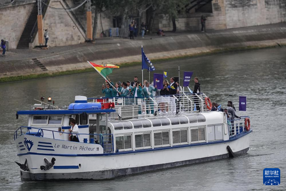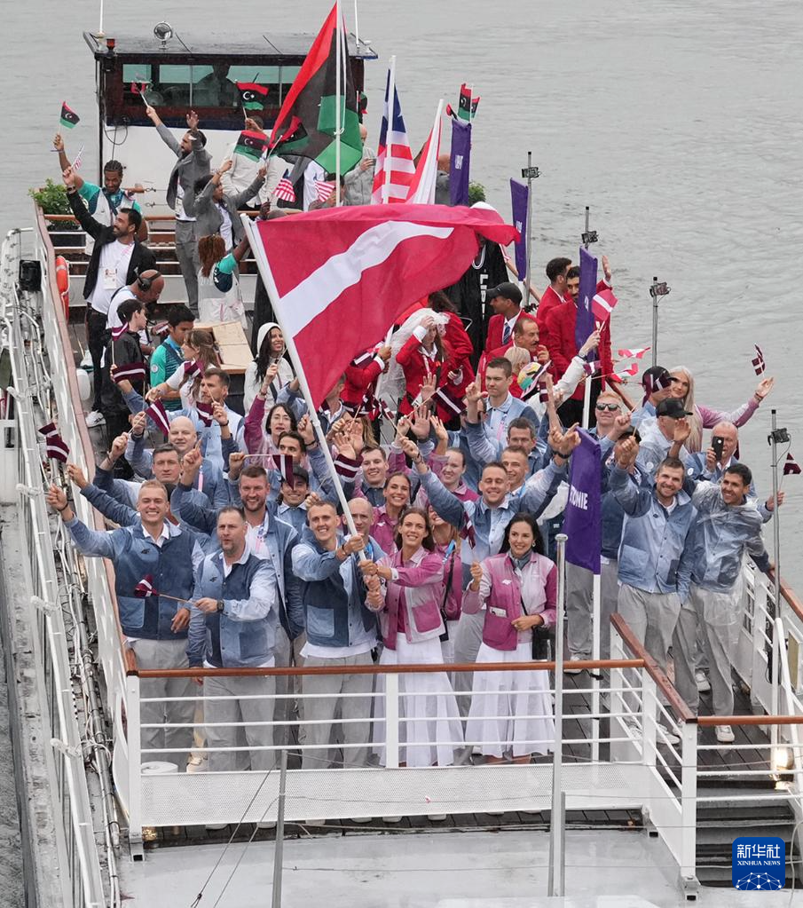7月26日,各代表團(tuán)成員在開幕式上抵達(dá)耶拿橋。新華社發(fā)(POOL照片/盧多維克·馬林)