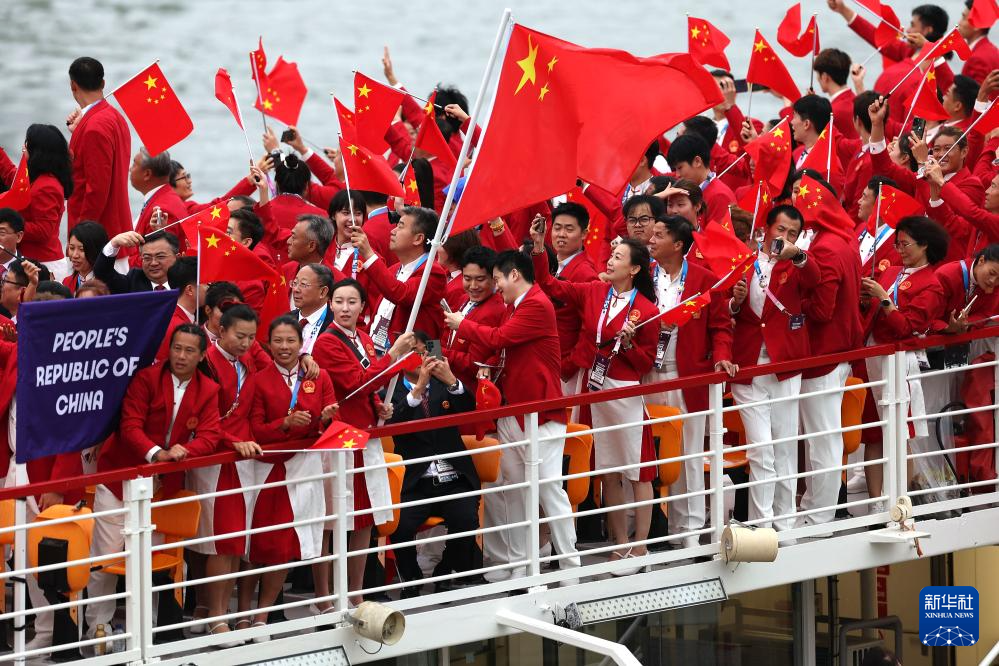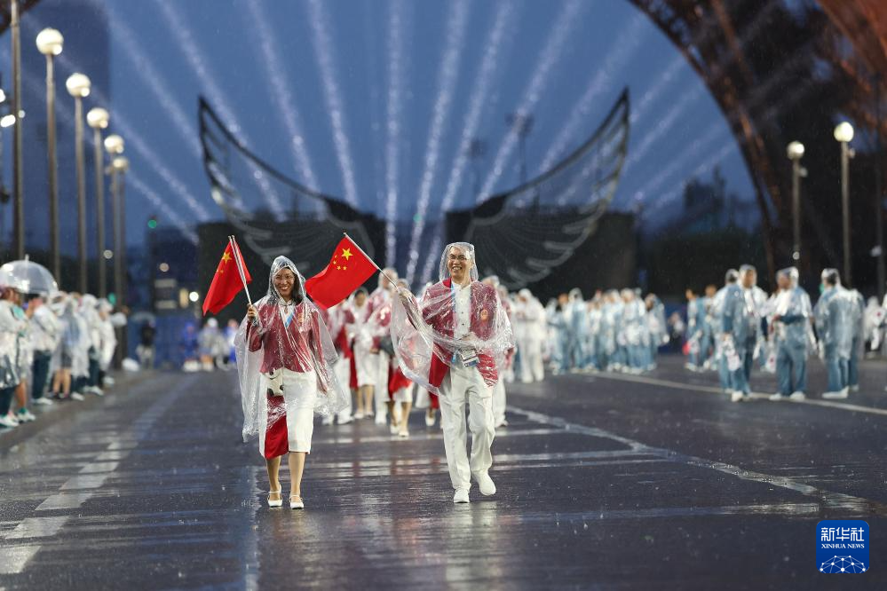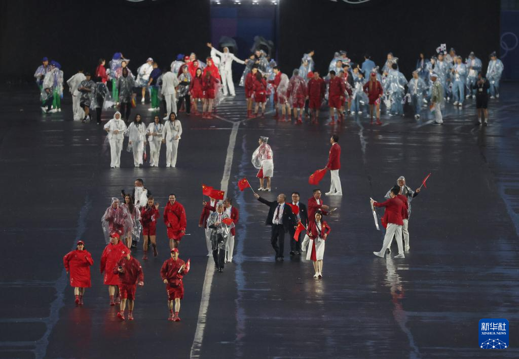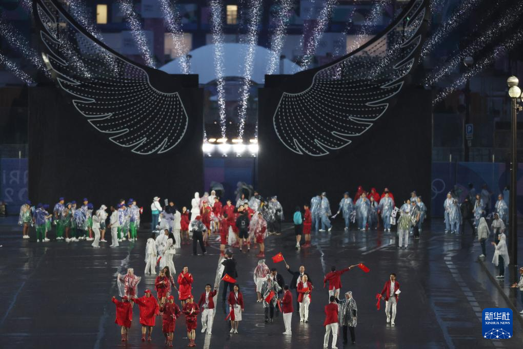 7月26日,中國體育代表團(tuán)在開幕式上。新華社記者 萬象 攝