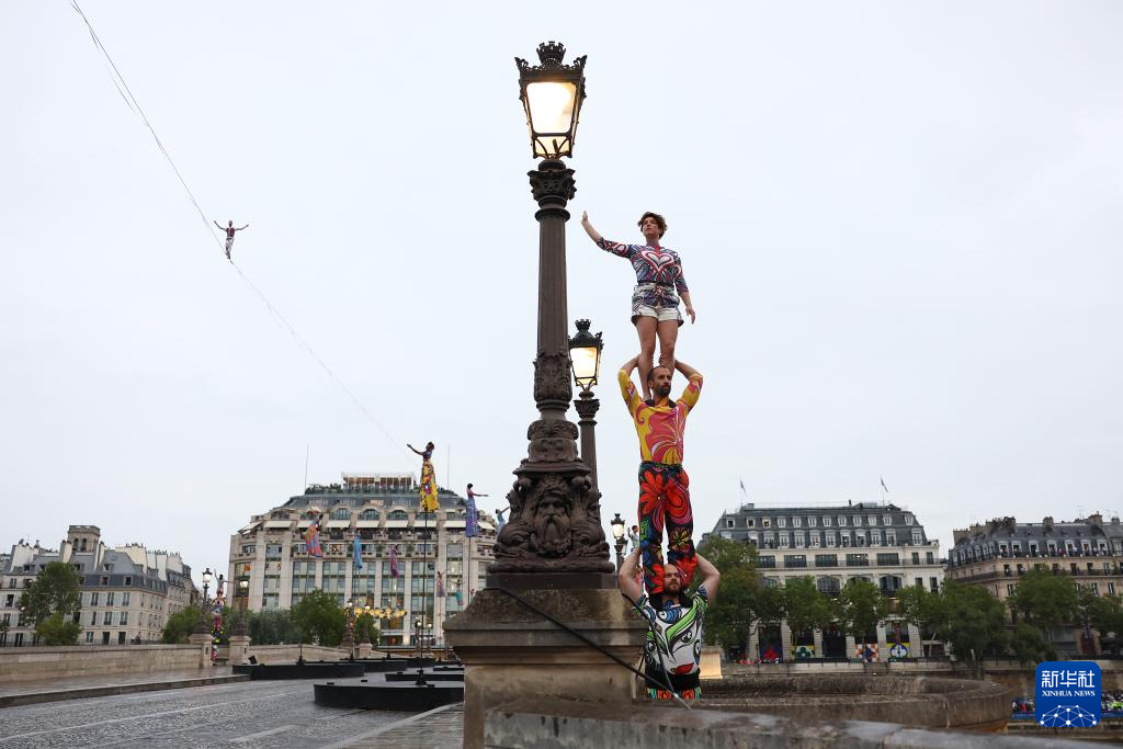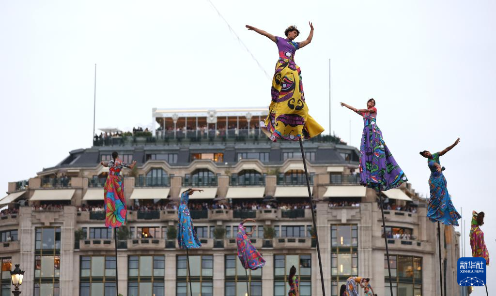 7月26日,演員在開幕式現(xiàn)場表演。新華社發(fā)(POOL照片/克洛達(dá)赫·基爾科因)