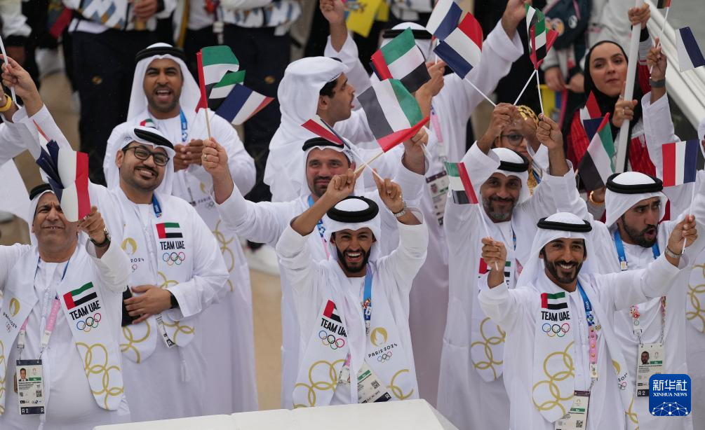 7月26日,各體育代表團(tuán)在開幕式上。新華社發(fā)(POOL照片/里卡多·毛佐蘭)