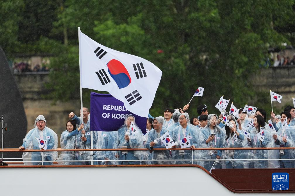 7月26日,韓國體育代表團(tuán)在開幕式上。新華社記者 江文耀 攝