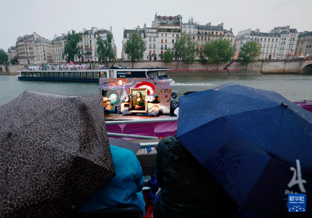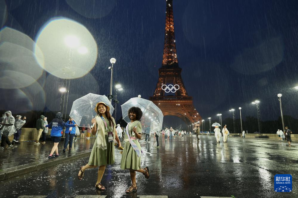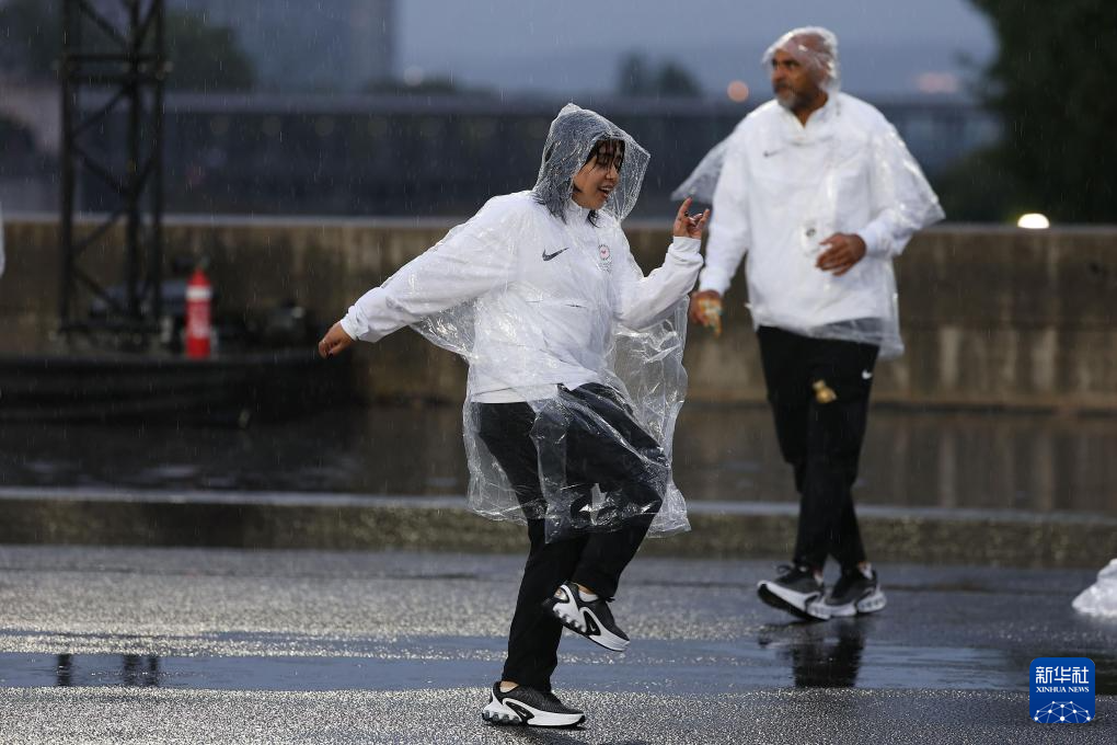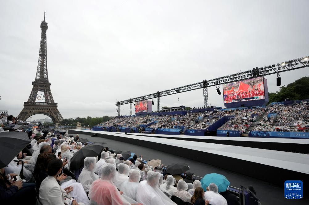 7月26日,觀眾在雨中觀看開幕式。新華社發(fā)(POOL照片/克洛達(dá)赫·基爾科因)