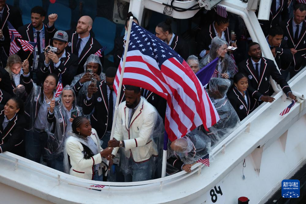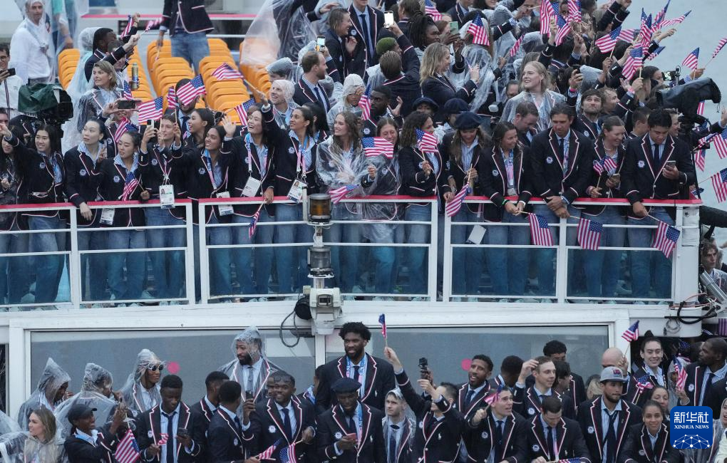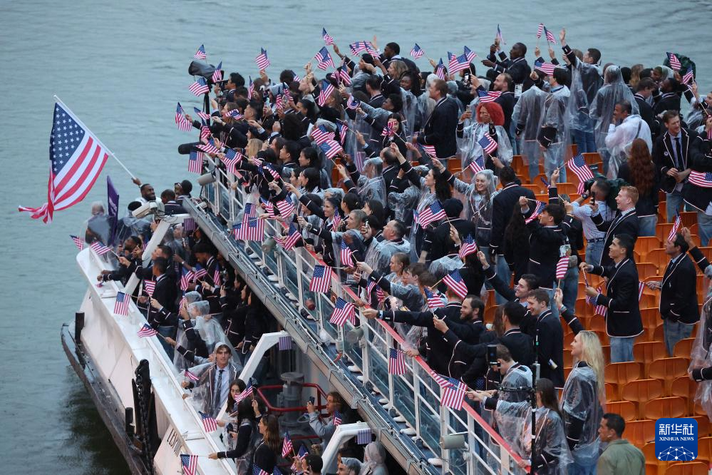 7月26日,美國體育代表團(tuán)在開幕式上。新華社記者 萬象 攝
