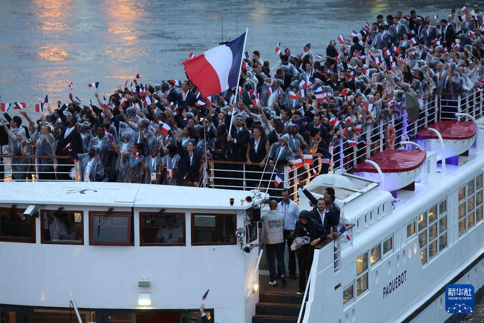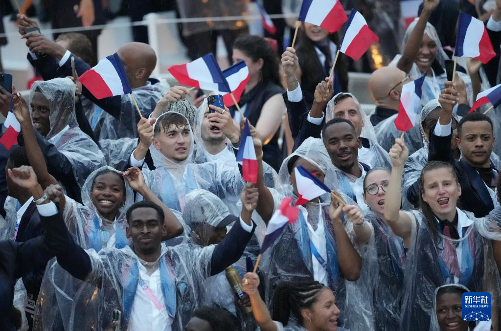7月26日,法國體育代表團(tuán)在開幕式上。新華社記者 萬象 攝pagebreak