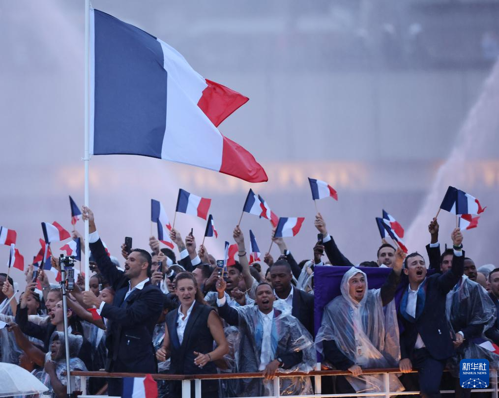 7月26日,法國體育代表團(tuán)在開幕式上。新華社記者 李鋼 攝pagebreak