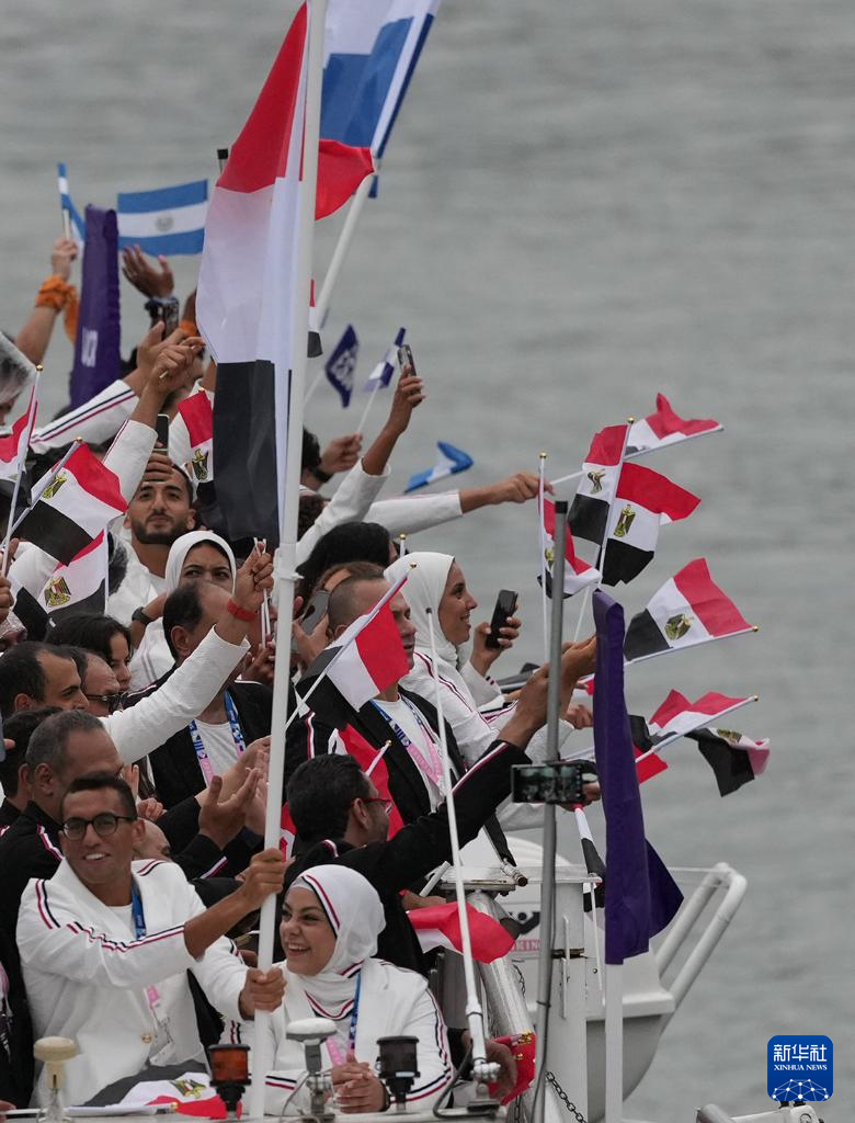 7月26日,埃及體育代表團(tuán)(右)在開幕式上。新華社記者 萬象 攝