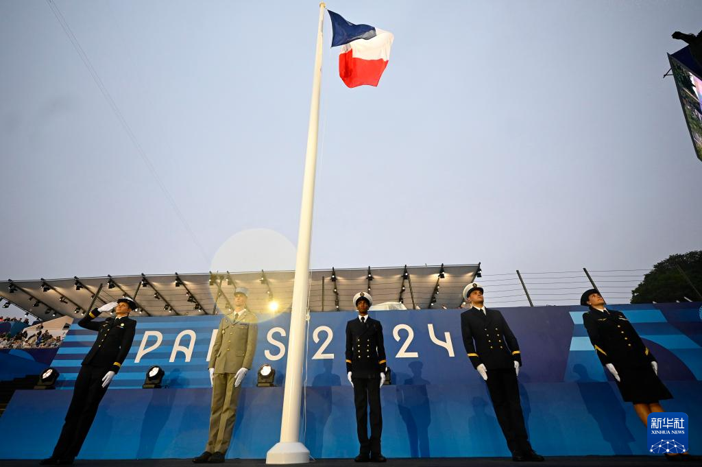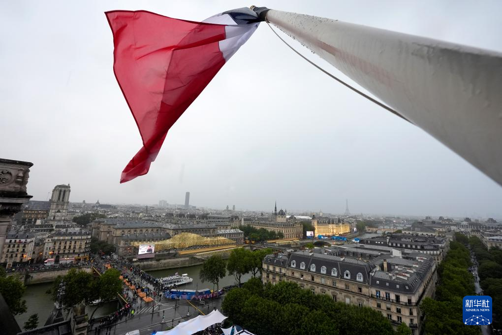 7月26日,開幕式上升起法國國旗。新華社發(fā)(POOL照片/洛伊克·韋南斯)