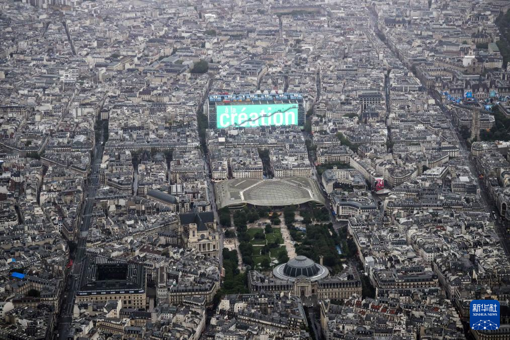 在杜樂麗花園拍攝的開幕式現(xiàn)場(7月26日攝)。新華社發(fā)(POOL照片/利昂內(nèi)爾·博納旺蒂爾)