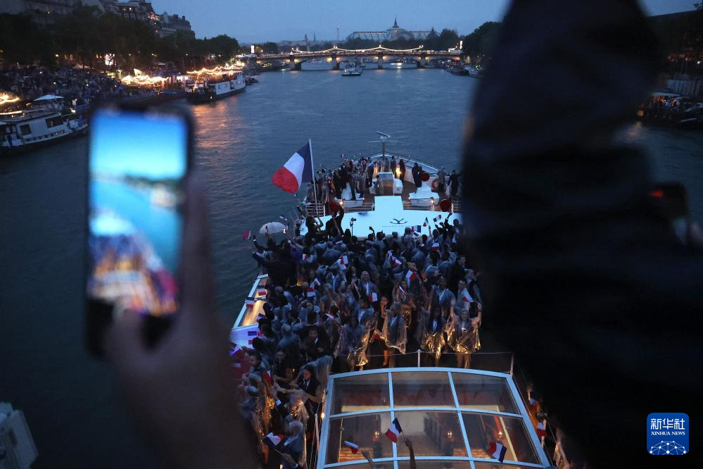 7月26日,法國體育代表團(tuán)在開幕式上。新華社記者 郭昱 攝