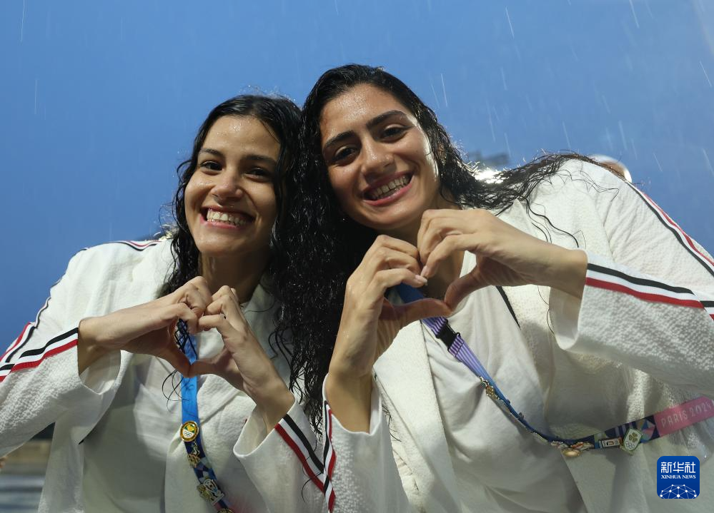 7月26日,埃及體育代表團(tuán)成員在埃菲爾鐵塔前。新華社記者 李明 攝
