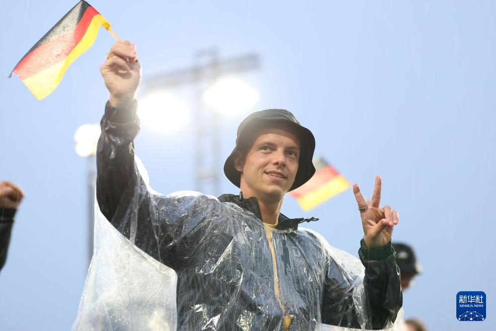 7月26日,德國體育代表團(tuán)成員在開幕式上慶祝。新華社記者 李明 攝pagebreak