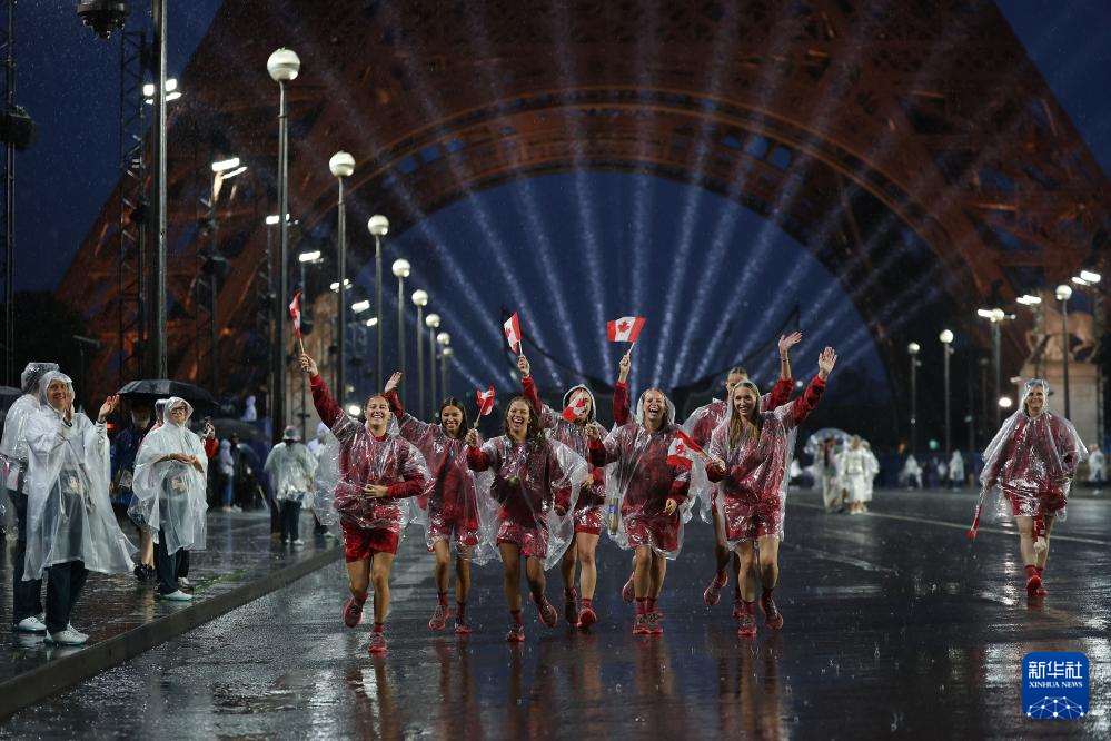 7月26日,加拿大體育代表團(tuán)成員在開幕式前。新華社記者 曹燦 攝