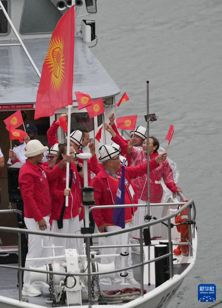 7月26日,吉爾吉斯斯坦體育代表團(tuán)在開幕式上。新華社記者 萬象 攝