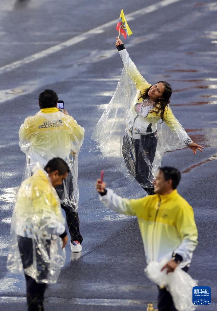 7月26日,厄瓜多爾體育代表團(tuán)進(jìn)入特羅卡德羅廣場。新華社記者 沈伯韓 攝