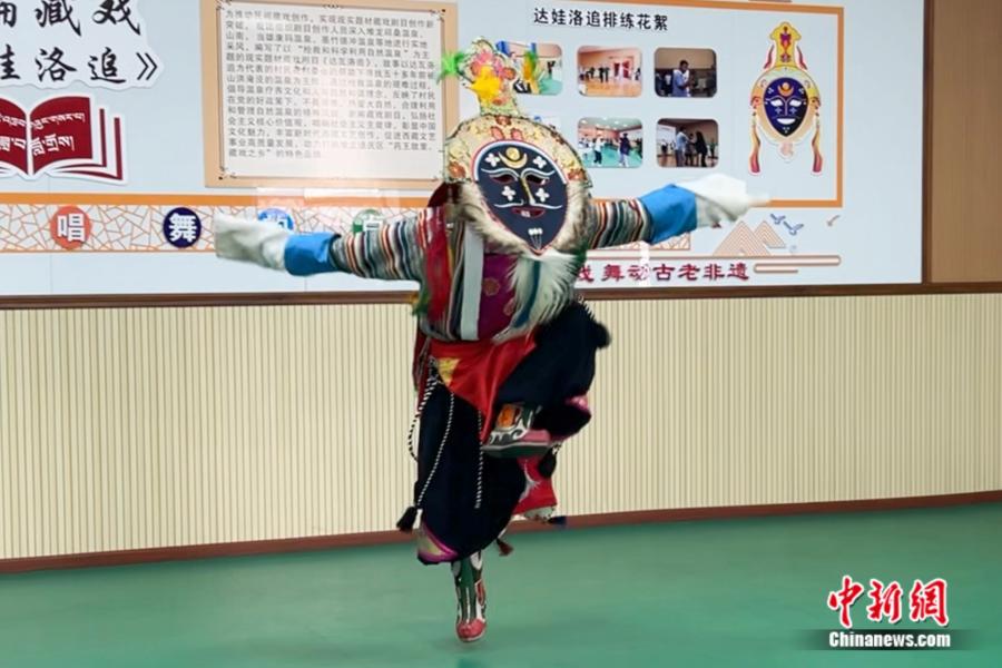 “我在短視頻平臺(tái)上看到藏戲老師們跳藏戲的視頻,覺得特別帥,所以我告訴爸爸媽媽‘我想學(xué)藏戲’。”今年11歲的藏族小朋友洛桑是洛桑扎西的覺木隆藏戲小學(xué)員之一,曾憑借出色的藏戲表演榮獲中國(guó)少兒戲曲“小梅花”稱號(hào)。他的夢(mèng)想是未來出演一次藏戲中的“王子”角色。