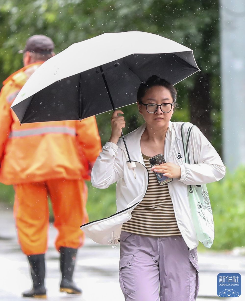 7月28日,在遼寧省沈陽市大東區(qū),市民在雨中出行。 新華社記者龍雷攝