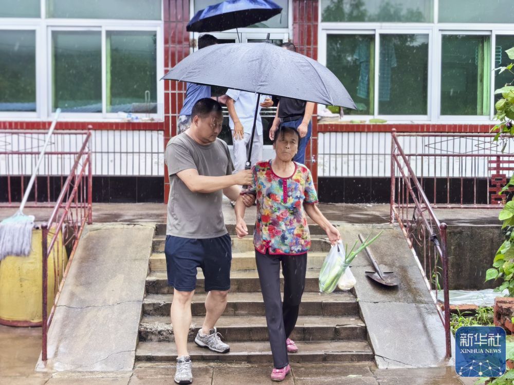 7月27日,在遼寧省鐵嶺縣雞冠山鄉(xiāng)業(yè)爾興村,村干部在轉移受災群眾?! ⌒氯A社發(fā)