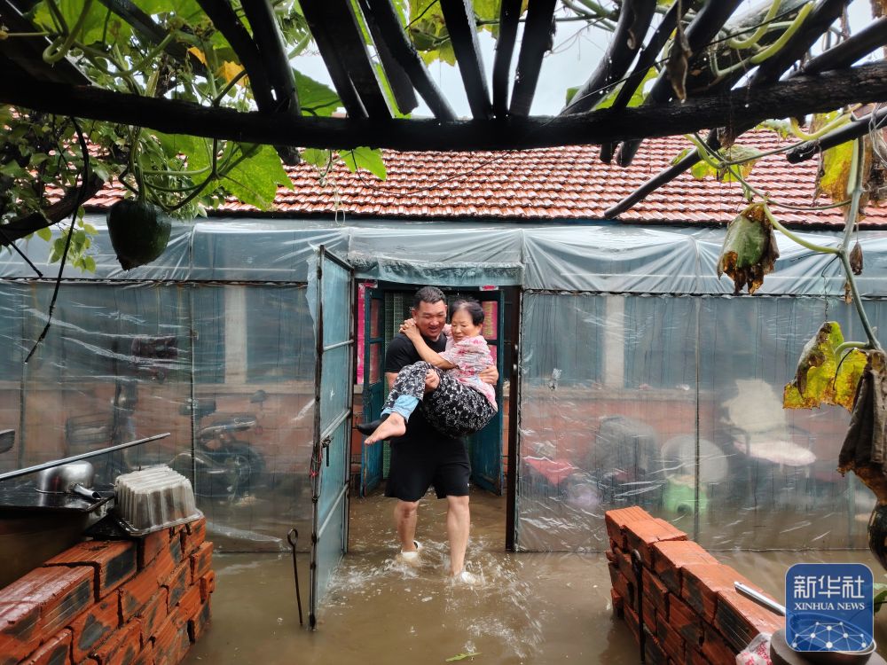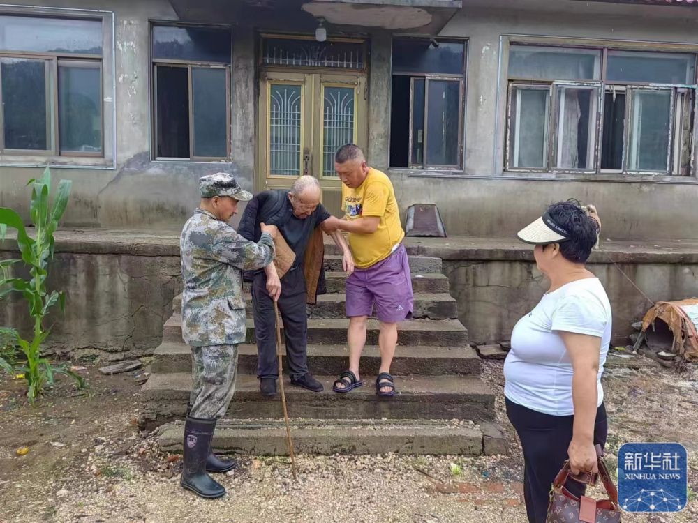 7月27日,在遼寧省鞍山市千山區(qū)老虎屯村,村干部在轉移受災群眾。 新華社發(fā)