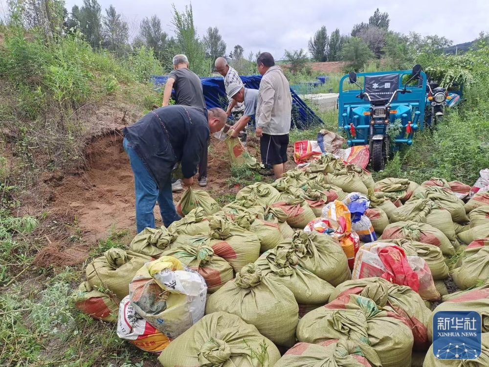 7月27日,遼寧省鐵嶺縣平頂堡鎮(zhèn)組織各村緊急裝運沙袋,全鎮(zhèn)共準備5000個沙袋迎戰(zhàn)強降雨。 新華社發(fā)