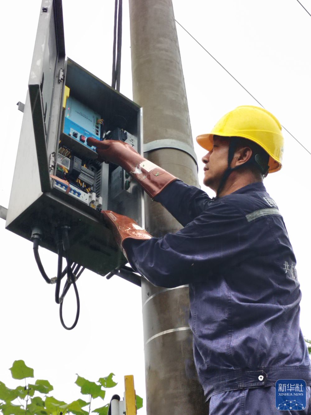 7月27日,在遼寧省丹東市,國家電網(wǎng)丹東供電公司員工對10千伏堡鎮(zhèn)線進行檢查。 新華社發(fā)