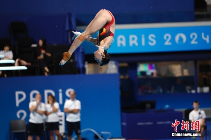 當(dāng)?shù)貢r(shí)間7月22日,法國(guó)巴黎,中國(guó)跳水隊(duì)在巴黎奧林匹克水上運(yùn)動(dòng)中心進(jìn)行訓(xùn)練。圖為全紅嬋。 中新社記者 富田 攝