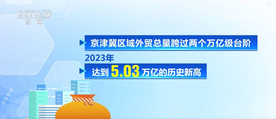 京津冀區(qū)域外貿(mào)總量跨過兩個萬億級臺階,2023年達到5.03萬億元的歷史新高。