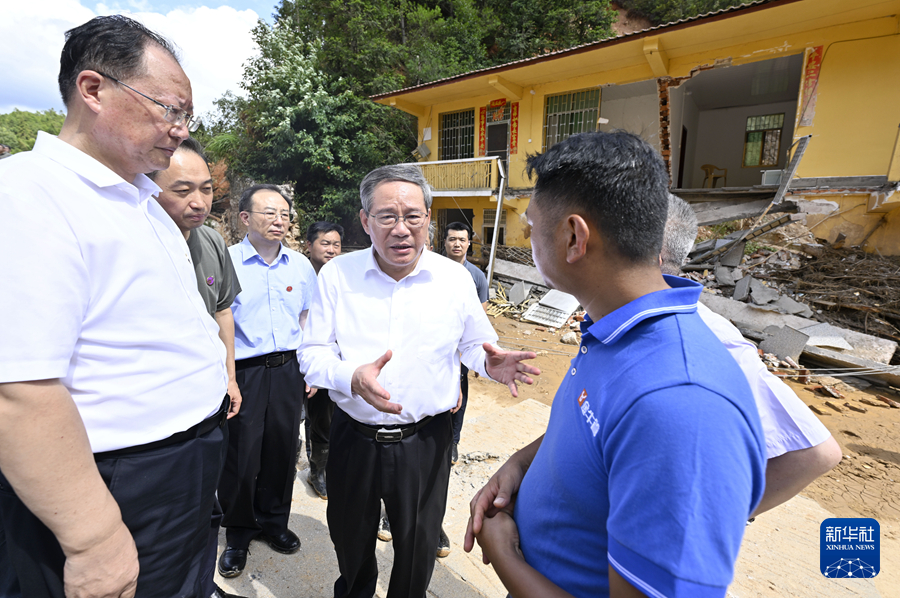 8月1日,中共中央政治局常委、國(guó)務(wù)院總理李強(qiáng)在湖南郴州看望慰問(wèn)受災(zāi)群眾,檢查指導(dǎo)防汛工作。這是李強(qiáng)在資興市州門(mén)司鎮(zhèn)燕窩村實(shí)地察看災(zāi)情,走訪受災(zāi)村民。新華社記者 岳月偉 攝