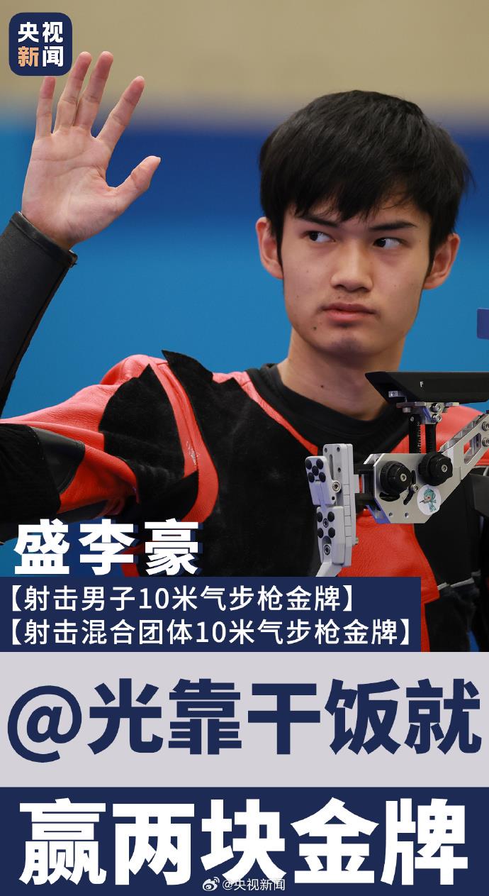 7月29日,在射擊男子10米氣步槍決賽中,“干飯哥”盛李豪再奪金牌,并打破奧運會紀錄!