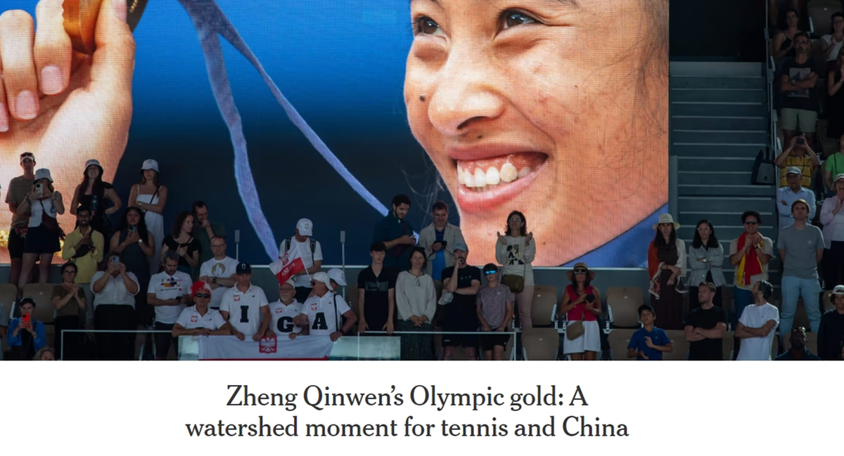 據(jù)美國《紐約時報》(NYTimes)當(dāng)?shù)貢r間4日在對中國網(wǎng)球選手鄭欽文的專題報道中寫道,對于中國網(wǎng)球來說,這只是一個時間問題,不是嗎?當(dāng)天凌晨,21歲的鄭欽文奪得巴黎奧運會女子網(wǎng)球單打冠軍,為中國網(wǎng)球奪得了首枚奧運女單金牌。