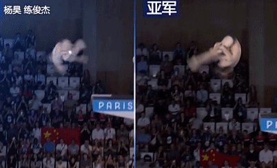 我們把動作放慢,對冠亞軍選手動作作對比,不難發(fā)現(xiàn),在空中轉(zhuǎn)體翻騰動作和入水水花上,中國的兩位選手明顯更勝一籌。