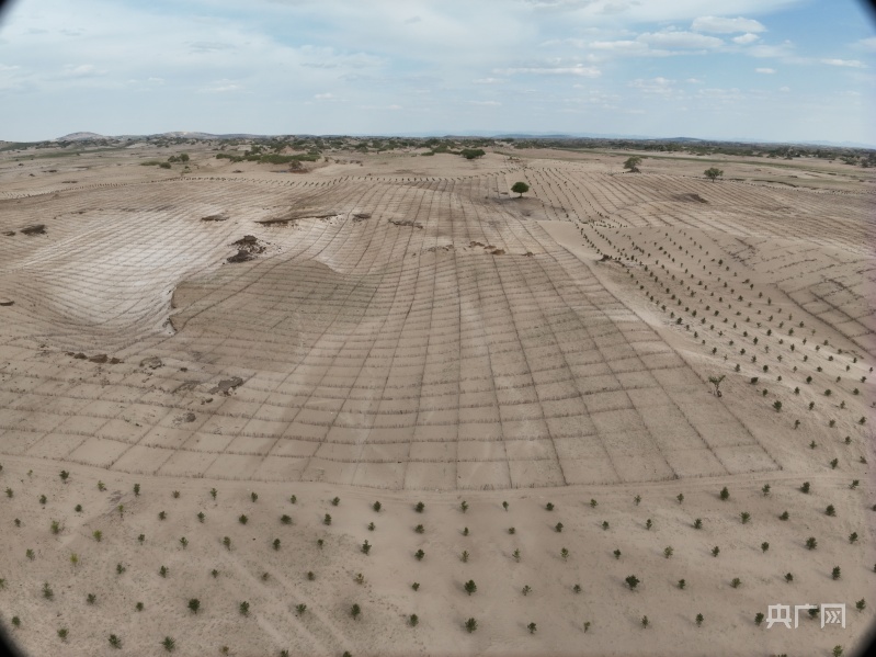 “像這樣的科技創(chuàng)新應用在莝草山治沙探索中還有很多?!睋?jù)介紹,該旗大面積的草種飛播、自主研發(fā)的沙障開溝機、合作定制草種播撒機械、核心區(qū)鋪設(shè)的滴灌帶、達來諾日鎮(zhèn)治沙區(qū)高聳的視頻遠程管護系統(tǒng)……在沙地治理中,科技力量使綠色得以加速成勢。