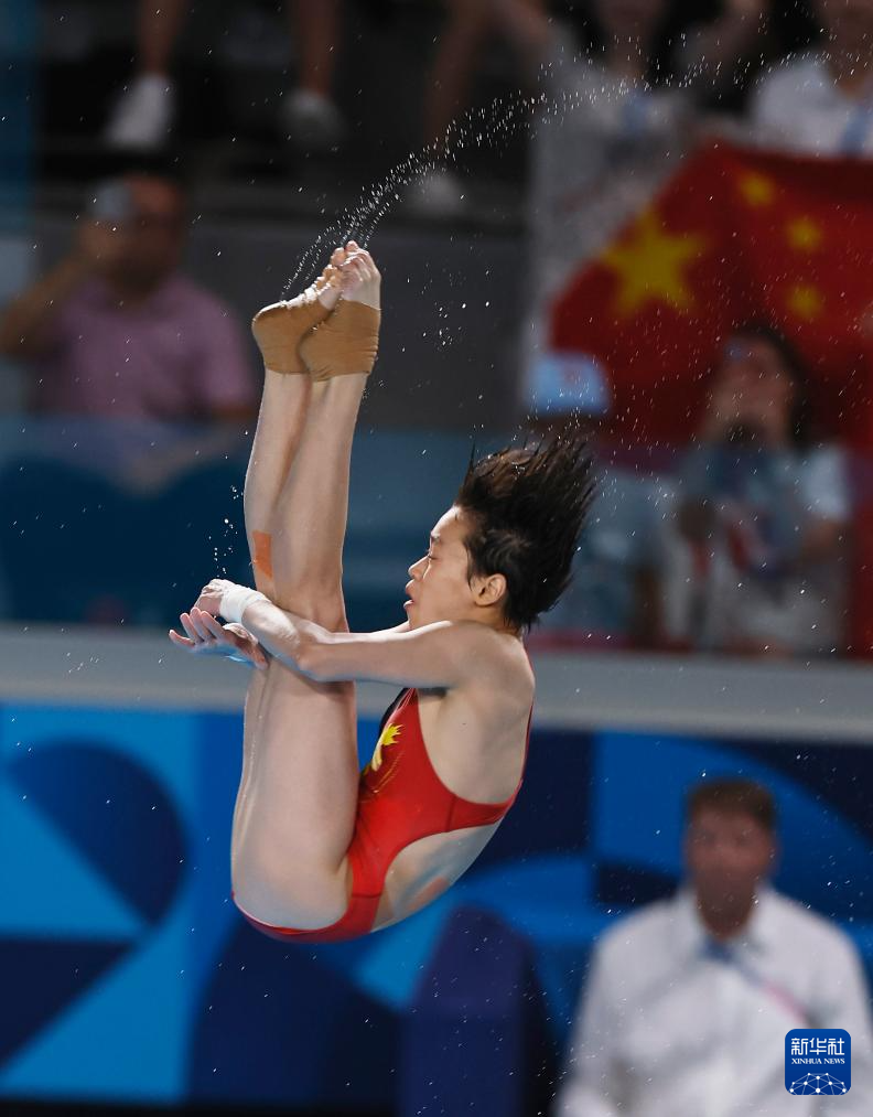 8月6日,中國選手全紅嬋在比賽中。新華社記者 張玉薇 攝