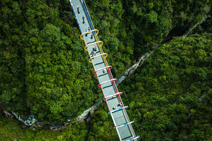 2023年8月20日,游客在湖北省恩施州建始縣地心谷景區(qū)游玩(無人機(jī)照片)。新華社記者 肖藝九 攝