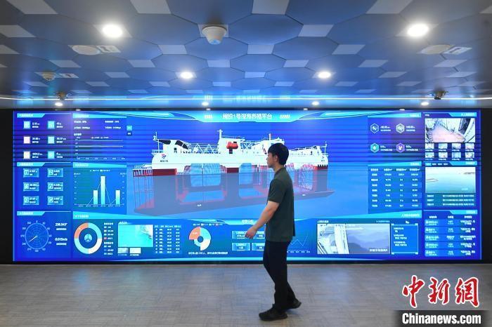 圖為工作人員正在查看“閩投1號(hào)”智慧漁業(yè)系統(tǒng)顯示屏。中新社記者 呂明 攝