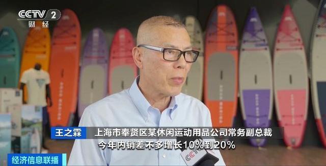 上海市奉賢區(qū)某休閑運動用品公司常務(wù)副總裁 王之霖:今年內(nèi)銷差不多增長10%到20%。有一些特殊的板,包括兒童、女性、入門的選擇比較多,1000多元到3000元。因為槳板是戶外運動的延伸,家庭類消費也多了,占比30%。