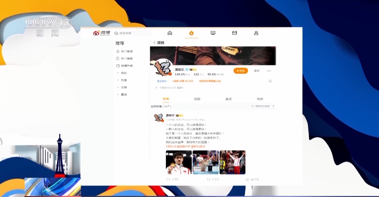 潘展樂在自己的微博里寫下,我的這塊金牌,獻給偉大的祖國!