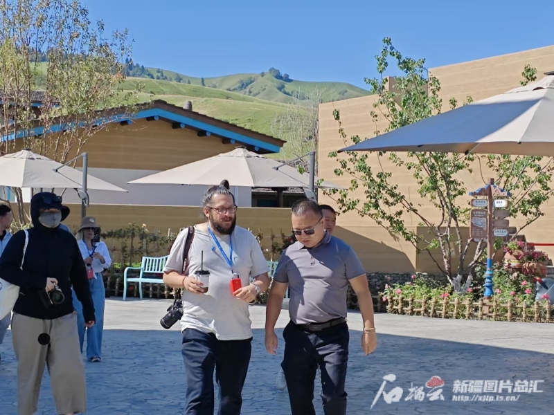 當(dāng)日,車輛剛抵達(dá)那拉提景區(qū)游客集散中心,11位土耳其媒體人士便滿懷激情,紛紛舉起手機(jī)與相機(jī),快門聲此起彼伏,記錄下這初見(jiàn)的驚喜。抬眼遠(yuǎn)眺,看到的是村落里一座座錯(cuò)落有致的院落式,這里是7月初營(yíng)業(yè)的那拉提拈花灣哈茵賽民族風(fēng)情度假村。
