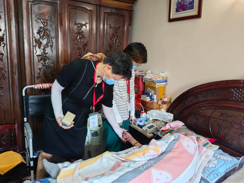 上海市普陀區(qū)老年照護(hù)統(tǒng)一需求評估員李穎芳(圖左)與社區(qū)醫(yī)生一同為老人做照護(hù)需求評估。新華社記者吳振東 攝