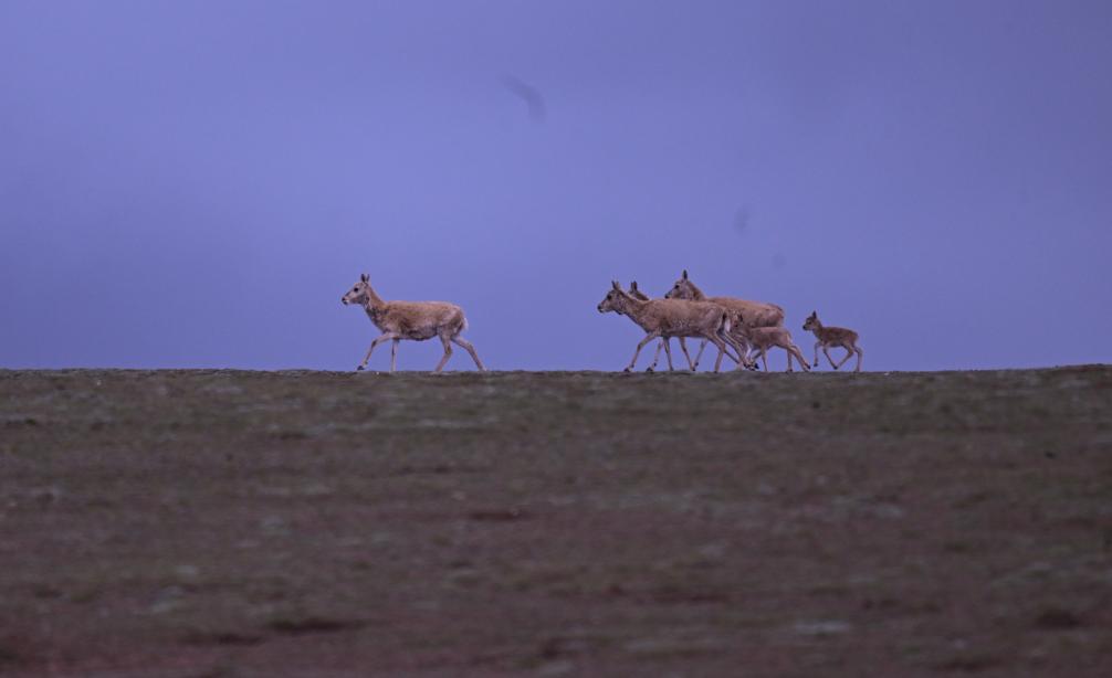 7月8日,在可可西里卓乃湖區(qū)域,幾只藏羚羊在活動。新華社記者 張龍 攝