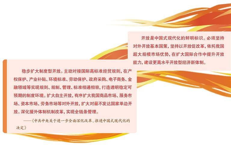 《決定》提出“穩(wěn)步擴大制度型開放”,要求主動對接國際高標準經(jīng)貿規(guī)則?!稕Q定》作出的一系列重要部署影響廣泛、意義深遠。