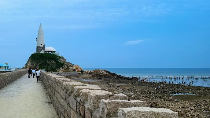 孫雪:這里的空氣比較清新,海的環(huán)境也不錯(cuò),很寬闊很藍(lán),我們大人喜歡拍照,小孩子就在這里趕海。