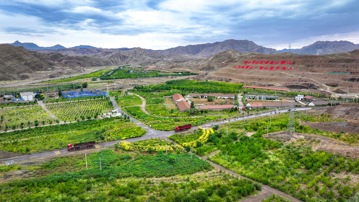 寧夏石嘴山市石炭井大磴溝生態(tài)修復(fù)示范區(qū)(2024年8月6日攝,無人機(jī)照片)。