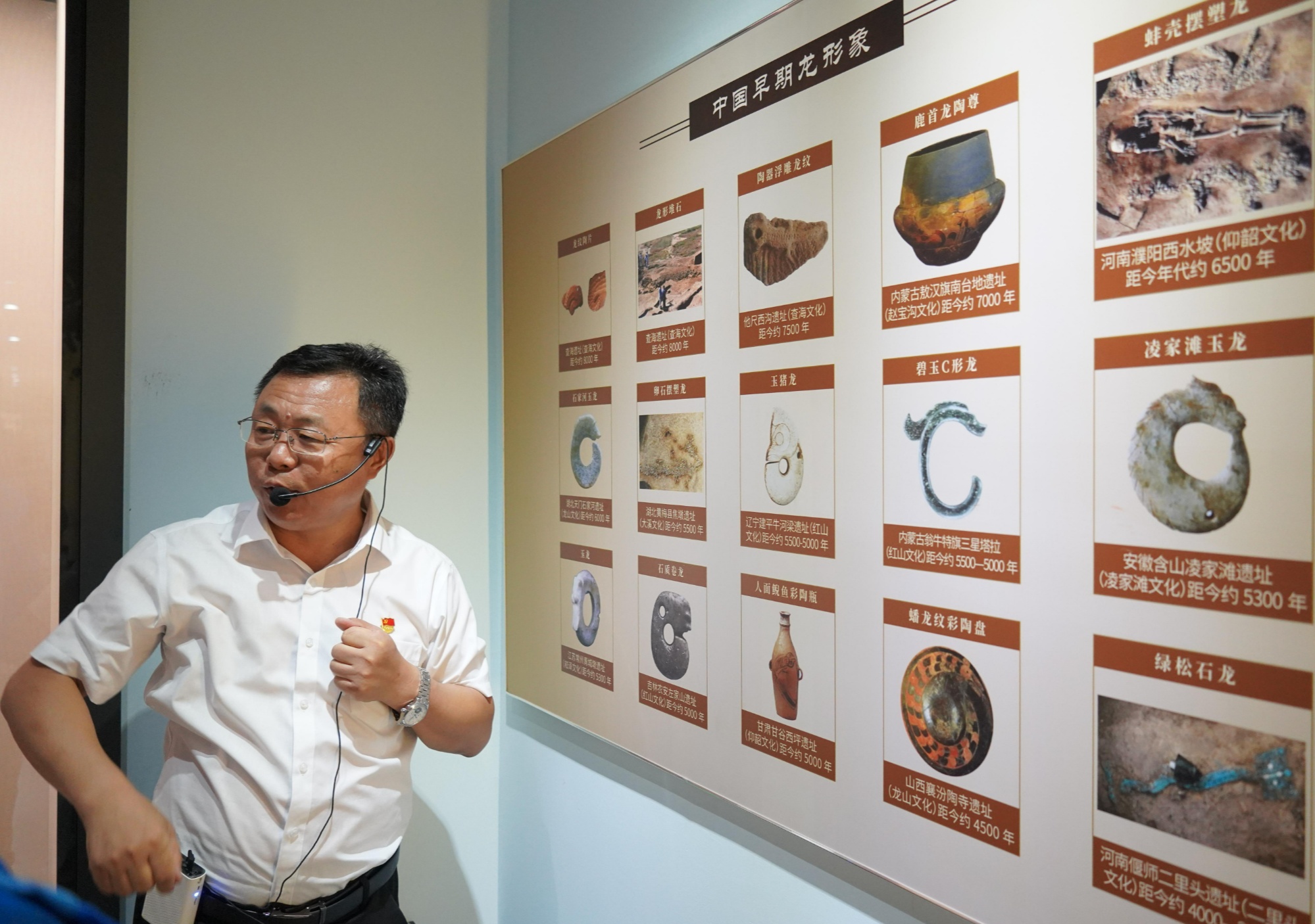 李井巖介紹早期龍形象(央廣網(wǎng)記者 李子平 攝)