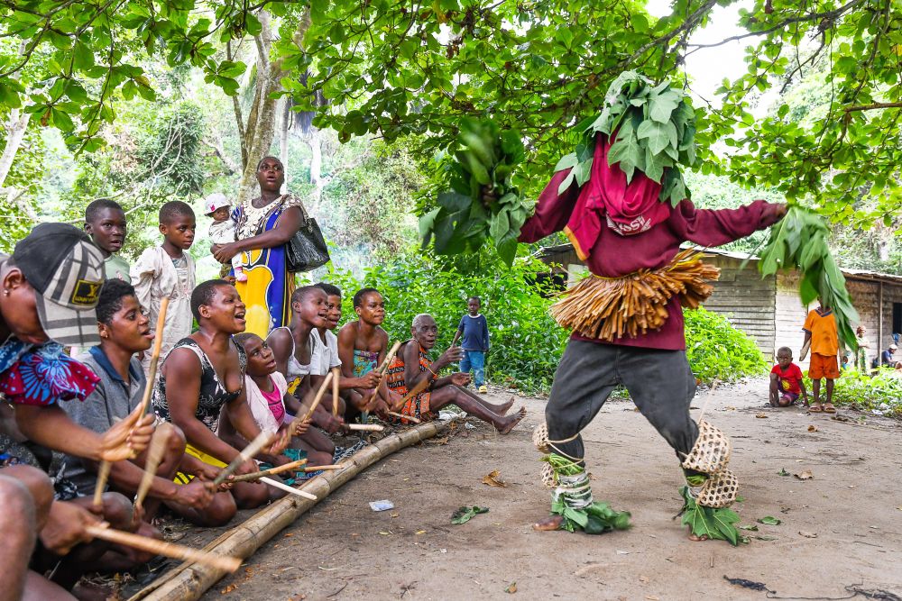 7月11日,在喀麥隆南部大區(qū)克里比市,恩杜馬萊村的俾格米人村民舉行慶祝活動(dòng)。新華社發(fā)(科普索攝)