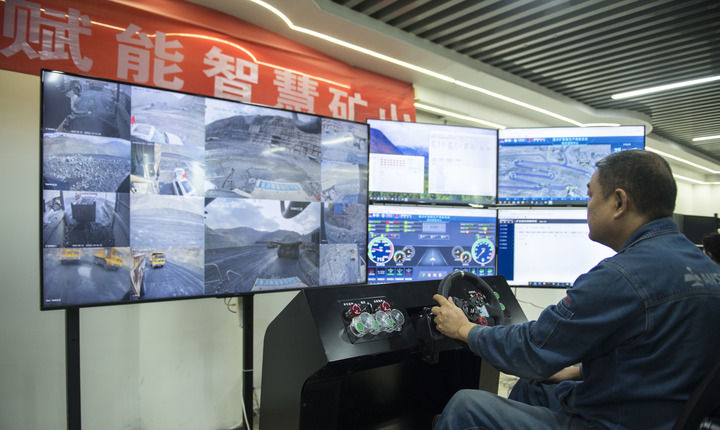 2024年4月11日,技術(shù)人員在位于四川省攀枝花市的攀鋼礦業(yè)朱蘭鐵礦智慧管控中心遠程操控無人自動駕駛礦車。新華社記者 張豪夫 攝