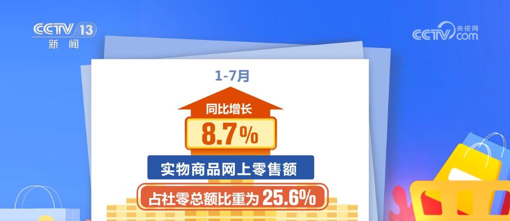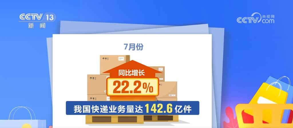 同時(shí),線上消費(fèi)增勢(shì)較好。1—7月,實(shí)物商品網(wǎng)上零售額同比增長(zhǎng)8.7%,占社零總額比重為25.6%。7月份,我國(guó)快遞業(yè)務(wù)量達(dá)142.6億件,同比增長(zhǎng)22.2%。