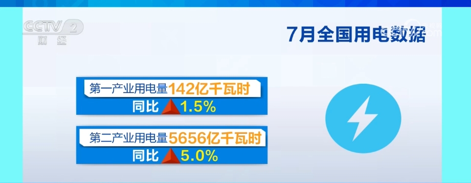 入夏以來,全國多地出現(xiàn)持續(xù)性高溫天氣,最大用電負(fù)荷快速攀升,電力供應(yīng)保障有力有效。7月份,全社會用電量9396億千瓦時,同比增長5.7%。從分產(chǎn)業(yè)用電看,第一產(chǎn)業(yè)用電量142億千瓦時,同比增長1.5%;第二產(chǎn)業(yè)用電量5656億千瓦時,同比增長5.0%;第三產(chǎn)業(yè)用電量1871億千瓦時,同比增長7.8%;城鄉(xiāng)居民生活用電量1727億千瓦時,同比增長5.9%。