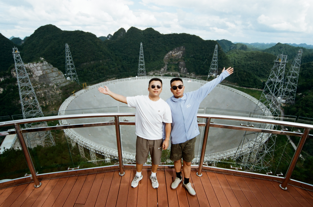 8月14日,游客在“中國(guó)天眼”景區(qū)觀景臺(tái)合影。新華社發(fā)