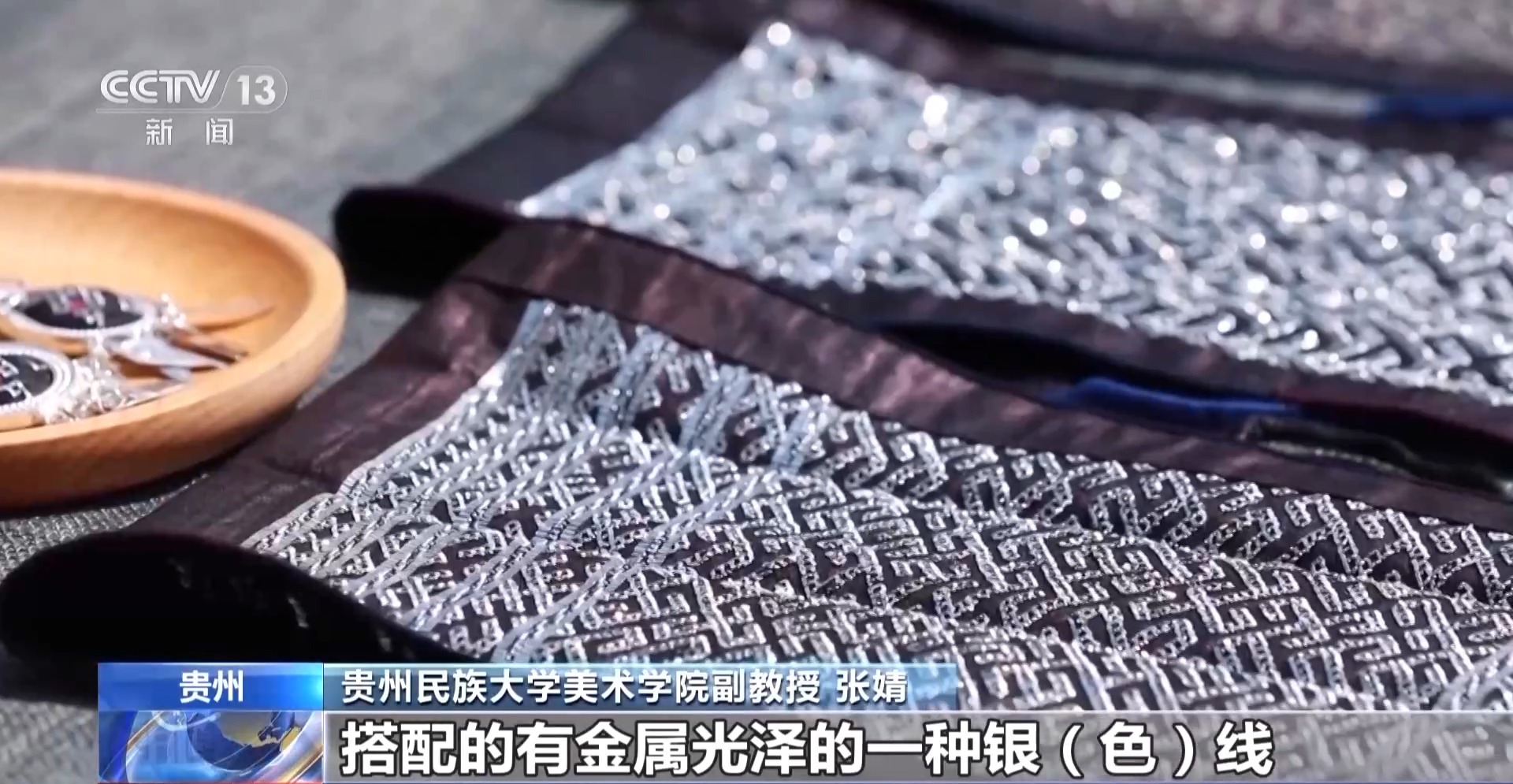 貴州民族大學(xué)美術(shù)學(xué)院副教授 張婧:在它的色調(diào)和質(zhì)感的對撞和對比下,使得劍河錫繡呈現(xiàn)一種少見的時尚感和現(xiàn)代感。